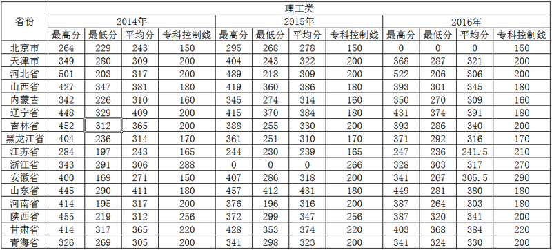 保定电力职业技术学院2014-2016年各省录取分数线及专科控制线